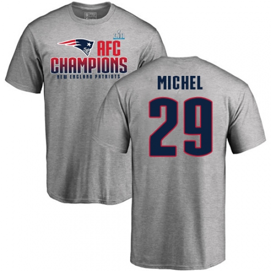 >Nike New England Patriots #29 Sony Michel Heather Gray 2017 AFC Champions V-Neck T-Shirt