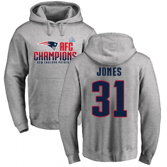 >Nike New England Patriots #31 Jonathan Jones Heather Gray 2017 AFC Champions Pullover Hoodie
