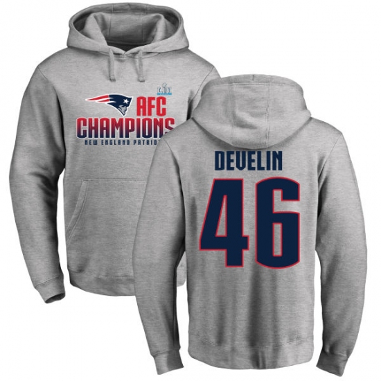 >Nike New England Patriots #46 James Develin Heather Gray 2017 AFC Champions Pullover Hoodie