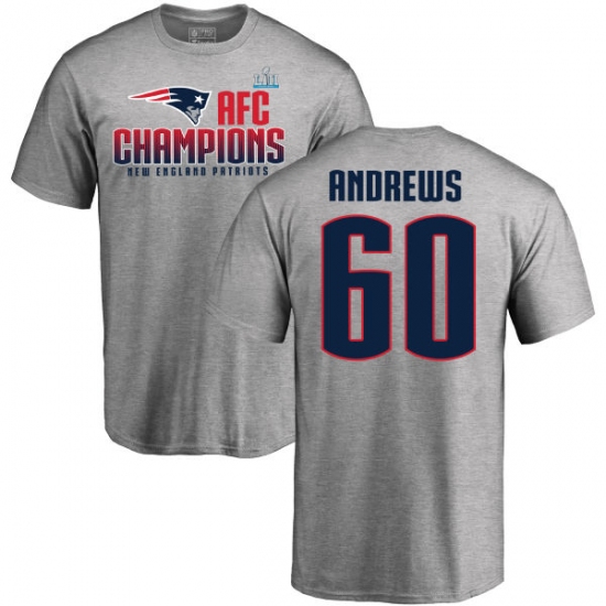 >Nike New England Patriots #60 David Andrews Heather Gray 2017 AFC Champions V-Neck T-Shirt