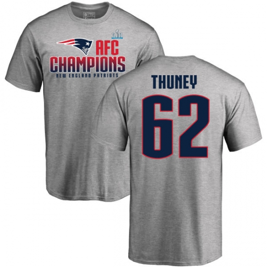 >Nike New England Patriots #62 Joe Thuney Heather Gray 2017 AFC Champions V-Neck T-Shirt