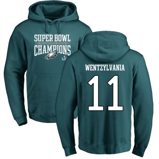 Nike Philadelphia Eagles #11 Carson Wentz Green Wentzylvania Super Bowl LII Champions Pullover Hoodie