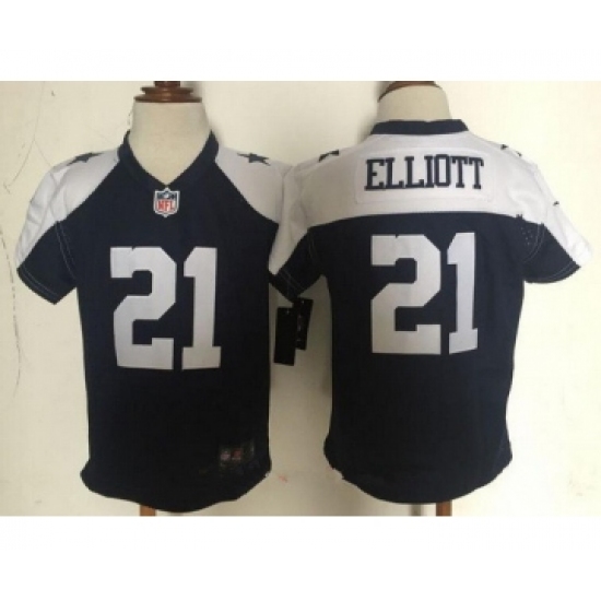 >Toddler Dallas Cowboys #21 Ezekiel Elliott Navy Blue Thanksgiving Stitched NFL Nike Game Jersey