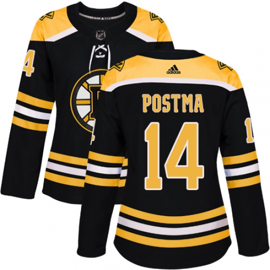 Home>NHL>Boston Bruins>Paul Postma>Women's Adidas Boston Bruins #14 Paul Postma Premier Black Home NHL Jersey