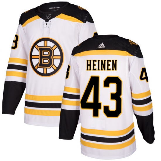 Women's Adidas Boston Bruins #43 Danton Heinen Authentic White Away NHL Jersey