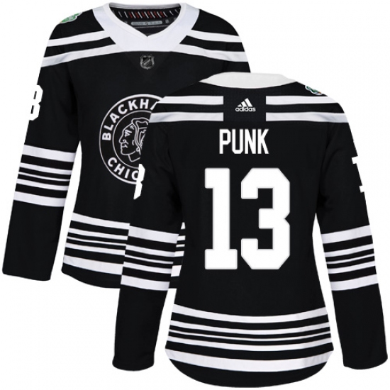 >Women's Adidas Chicago Blackhawks #13 CM Punk Authentic Black 2019 Winter Classic NHL Jersey