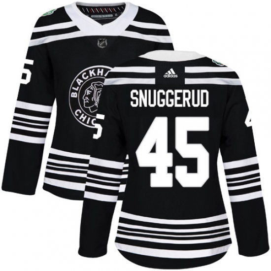 Women's Adidas Chicago Blackhawks #45 Luc Snuggerud Authentic Black 2019 Winter Classic NHL Jersey