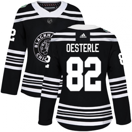 Women's Adidas Chicago Blackhawks #82 Jordan Oesterle Authentic Black 2019 Winter Classic NHL Jersey