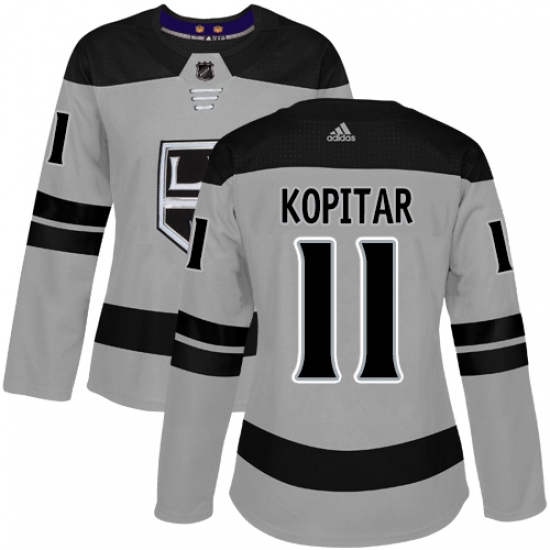 >Women's Adidas Los Angeles Kings #11 Anze Kopitar Authentic Gray Alternate NHL Jersey