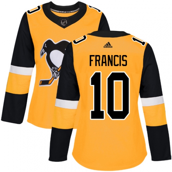 Women's Adidas Pittsburgh Penguins #10 Ron Francis Authentic Gold Alternate NHL Jersey