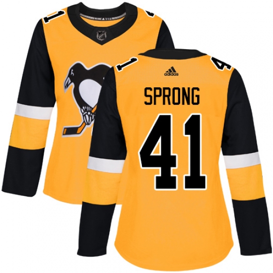 Women's Adidas Pittsburgh Penguins #41 Daniel Sprong Authentic Gold Alternate NHL Jersey