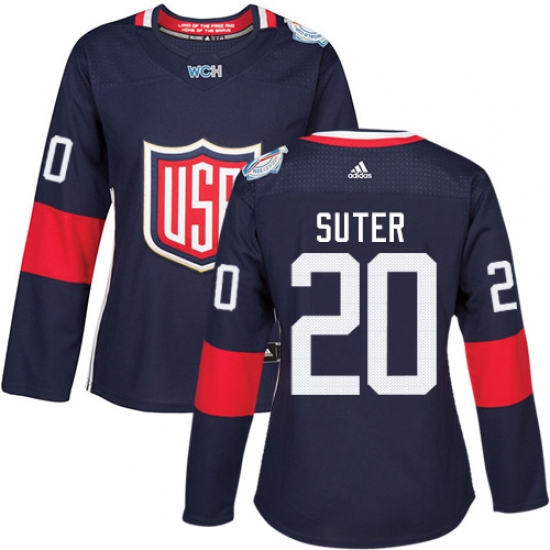 Home>NHL>Team USA>Ryan Suter>Women's Adidas Team USA #20 Ryan Suter Premier Navy Blue Away 2016 World Cup Hockey Jersey