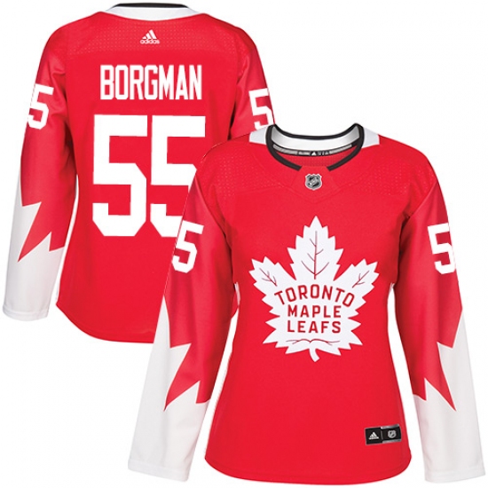 Home>NHL>Toronto Maple Leafs>Andreas Borgman>Women's Adidas Toronto Maple Leafs #55 Andreas Borgman Authentic Red Alternate NHL Jersey
