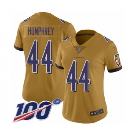 >Women's Baltimore Ravens #44 Marlon Humphrey Limited Gold Inverted Legend 100th Season Football Jersey