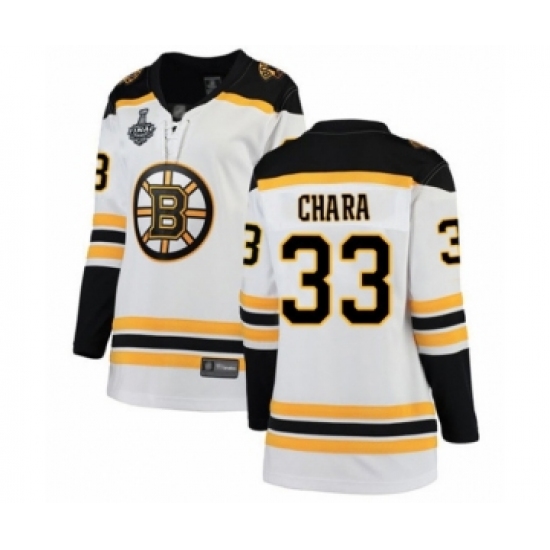 Women's Boston Bruins #33 Zdeno Chara Authentic White Away Fanatics Branded Breakaway 2019 Stanley Cup Final Bound Hockey Jersey