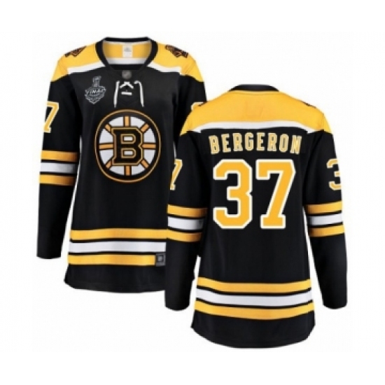 >Women's Boston Bruins #37 Patrice Bergeron Authentic Black Home Fanatics Branded Breakaway 2019 Stanley Cup Final Bound Hockey Jersey