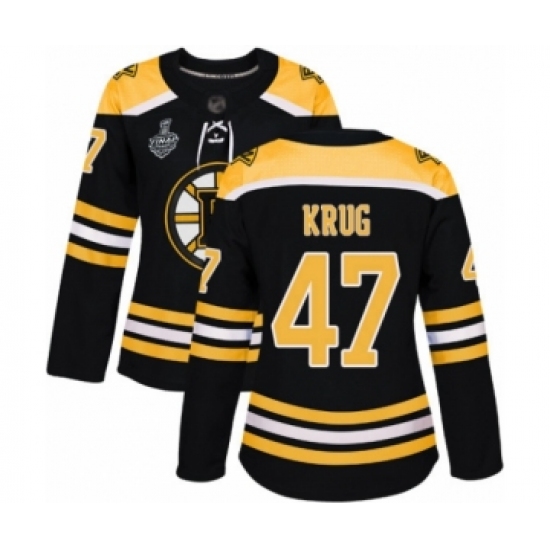 Women's Boston Bruins #47 Torey Krug Authentic Black Home 2019 Stanley Cup Final Bound Hockey Jersey
