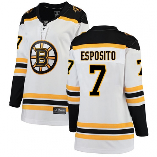 Home>NHL>Boston Bruins>Phil Esposito>Women's Boston Bruins #7 Phil Esposito Authentic White Away Fanatics Branded Breakaway NHL Jersey