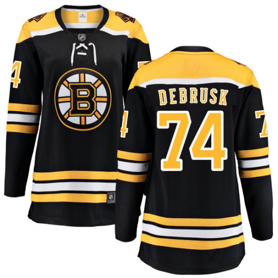 Home>NHL>Boston Bruins>Jake DeBrusk>Women's Boston Bruins #74 Jake DeBrusk Authentic Black Home Fanatics Branded Breakaway NHL Jersey