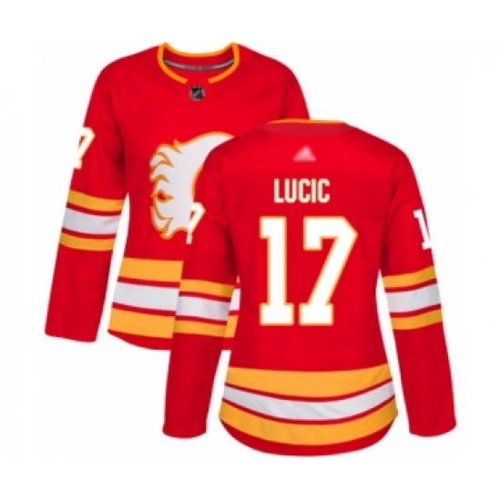 >Women's Calgary Flames #17 Milan Lucic Authentic Red Alternate Hockey Jersey