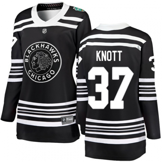 >Women's Chicago Blackhawks #37 Graham Knott Black 2019 Winter Classic Fanatics Branded Breakaway NHL Jersey