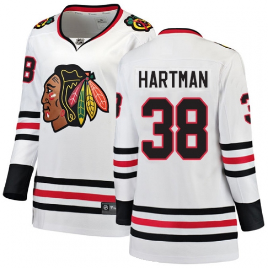 Women's Chicago Blackhawks #38 Ryan Hartman Authentic White Away Fanatics Branded Breakaway NHL Jersey