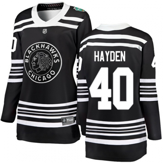 >Women's Chicago Blackhawks #40 John Hayden Black 2019 Winter Classic Fanatics Branded Breakaway NHL Jersey