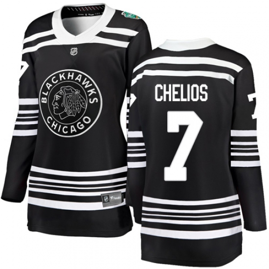 >Women's Chicago Blackhawks #7 Chris Chelios Black 2019 Winter Classic Fanatics Branded Breakaway NHL Jersey