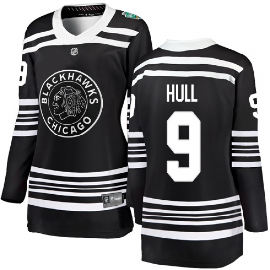 >Women's Chicago Blackhawks #9 Bobby Hull Black 2019 Winter Classic Fanatics Branded Breakaway NHL Jersey