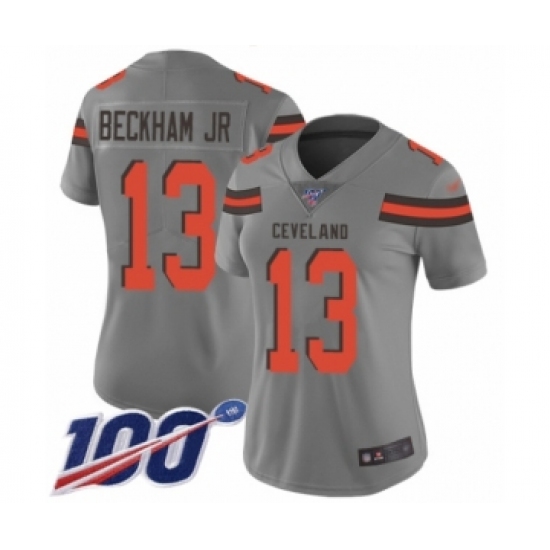 Women's Cleveland Browns #13 Odell Beckham Jr. 100th Season Limited Gray Inverted Legend Football Jersey