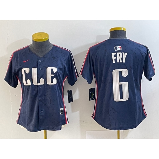 >Women's Cleveland Guardians #6 David Fry Navy 2024 City Connect Limited Stitched Jerseys