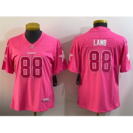 >Womens Dallas Cowboys #88 CeeDee Lamb Pink Vapor Untouchable Limited Stitched Football Jersey(Run Small)