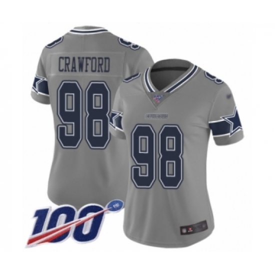 >Women's Dallas Cowboys #98 Tyrone Crawford Limited Gray Inverted Legend 100th Season Football Jersey