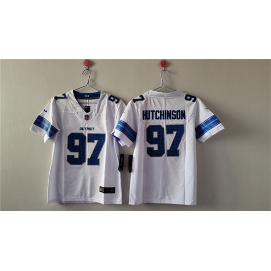 >Women's Detroit Lions #97 Aidan Hutchinson White Vapor Football Stitched Jersey(Run Smaller)