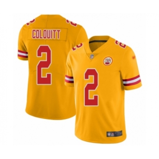 >Women's Kansas City Chiefs #2 Dustin Colquitt Limited Gold Inverted Legend Football Jersey