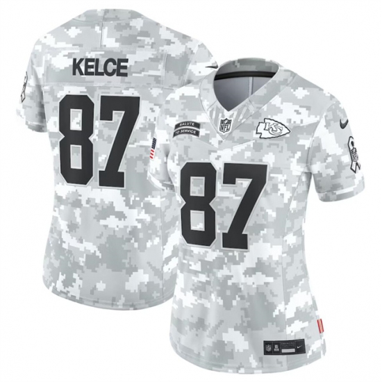 >Women's Kansas City Chiefs #87 Travis Kelce 2024 F.U.S.E Arctic Camo Salute To Service Limited Stitched Football Jersey(Run Small)