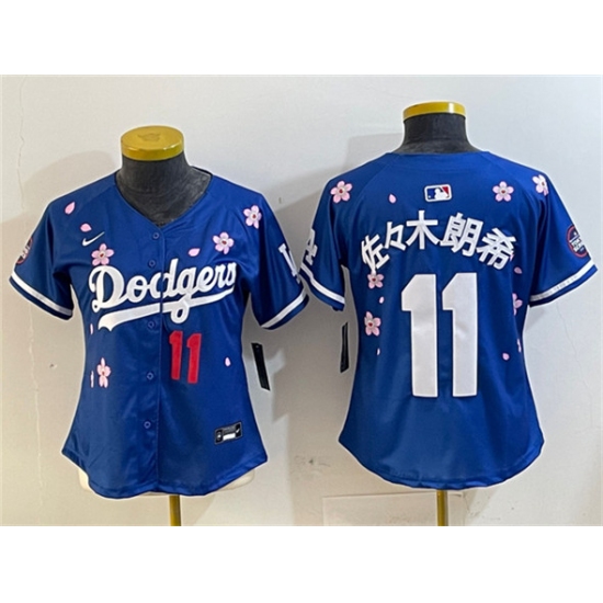 Women's Los Angeles Dodgers #11 佐々木朗希 Royal 2025 Tokyo Series Limited Stitched Baseball Jersey(Run Small)
