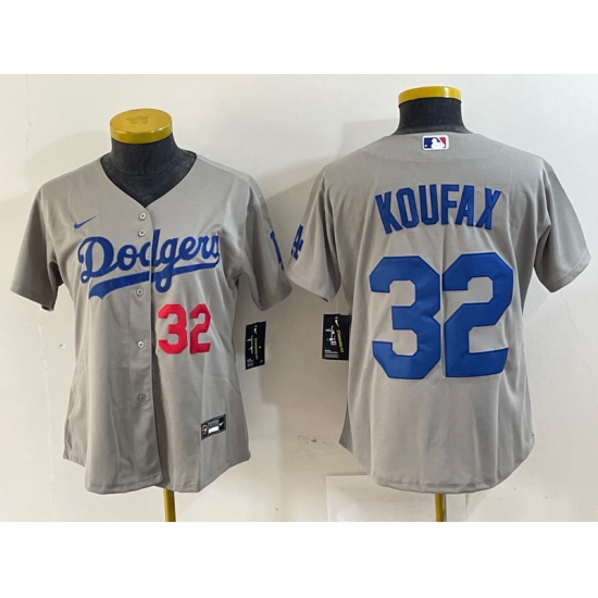 Women's Los Angeles Dodgers #32 Sandy Koufax Number Grey Cool Base Stitched Jersey