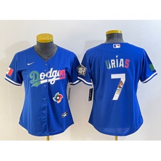 Women's Los Angeles Dodgers #7 Julio Urias Blue 2020 World Series Cool Base Nike Jersey2