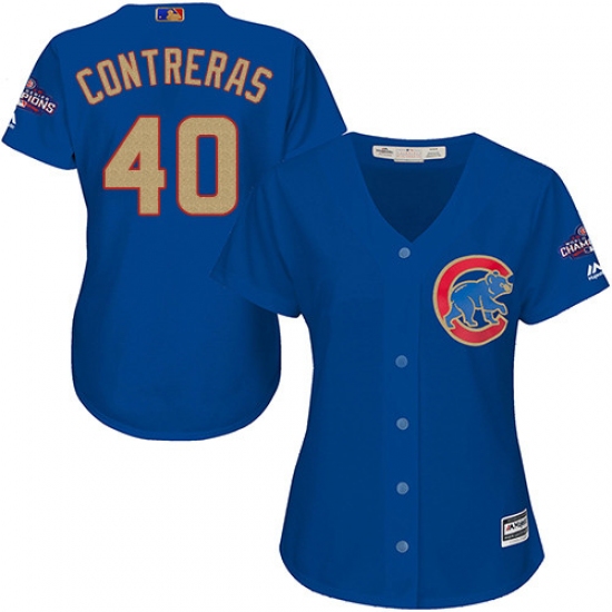 Home>MLB>Chicago Cubs>Willson Contreras>Women's Majestic Chicago Cubs #40 Willson Contreras Authentic Royal Blue 2017 Gold Champion MLB Jersey