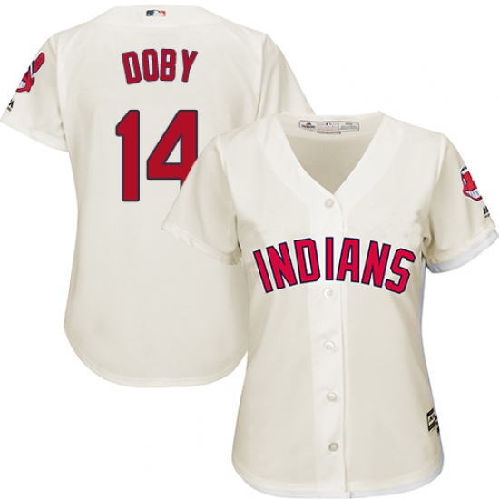 Home>MLB>Cleveland Indians>Larry Doby>Women's Majestic Cleveland Indians #14 Larry Doby Replica Cream Alternate 2 Cool Base MLB Jersey