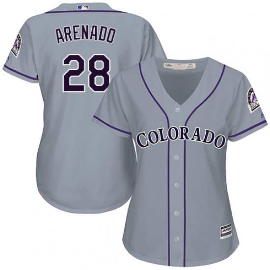 Home>MLB>Colorado Rockies>Nolan Arenado>Women's Majestic Colorado Rockies #28 Nolan Arenado Replica Grey Road Cool Base MLB Jersey