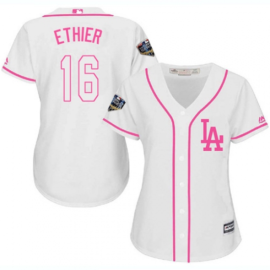 Women's Majestic Los Angeles Dodgers #16 Andre Ethier Authentic White Fashion Cool Base 2018 World Series MLB Jersey