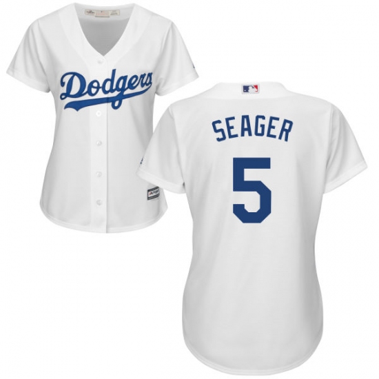 Home>MLB>Los Angeles Dodgers>Corey Seager>Women's Majestic Los Angeles Dodgers #5 Corey Seager Replica White Home Cool Base MLB Jersey