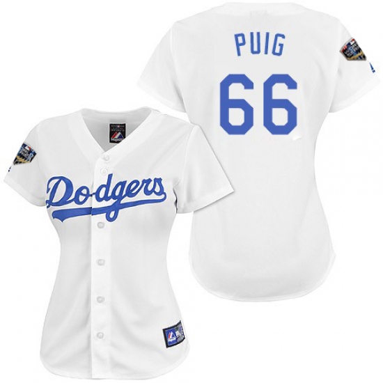 Women's Majestic Los Angeles Dodgers #66 Yasiel Puig Replica White MLB Jersey