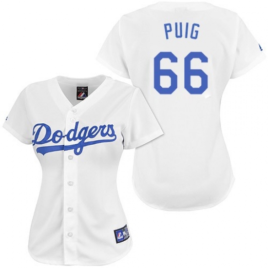 Women's Majestic Los Angeles Dodgers #66 Yasiel Puig Replica White MLB Jersey