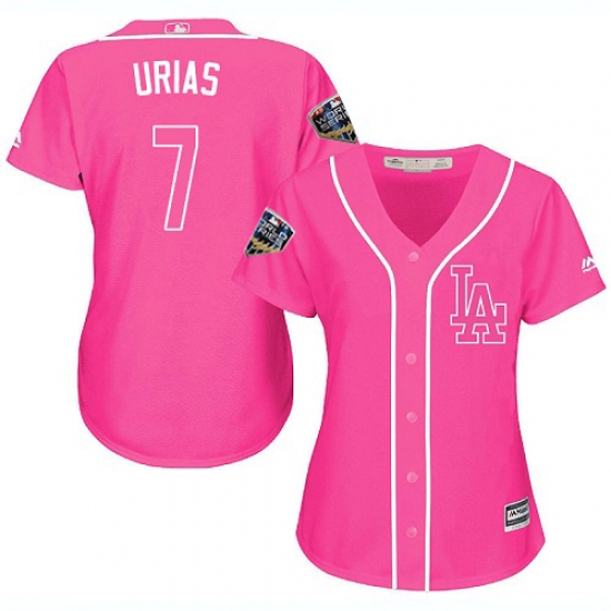 Women's Majestic Los Angeles Dodgers #7 Julio Urias Authentic Pink Fashion Cool Base 2018 World Series MLB Jerseyy