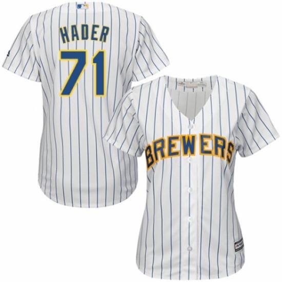 >Women's Majestic Milwaukee Brewers #71 Josh Hader Authentic White Home Cool Base MLB Jersey