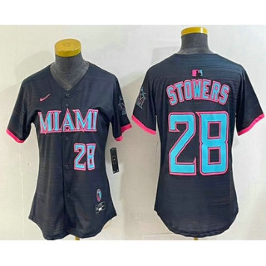 Women's Miami Marlins #28 Kyle Stowers Number Black 2025 City Connect Limited Jersey