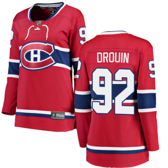 Home>NHL>Montreal Canadiens>Jonathan Drouin>Women's Montreal Canadiens #92 Jonathan Drouin Authentic Red Home Fanatics Branded Breakaway NHL Jersey